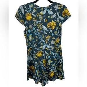 NWT Kimchi Blue Anita Ruffle Front Romper Urban Outfitters Size 4 Dark Teal-ish Grey with blue and yellow floral details