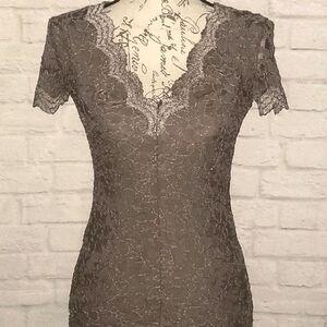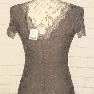 NWT, Kimchi Blue Taupe Colored Lace Overlay Scalloped Bodycon Mini Dress, XS