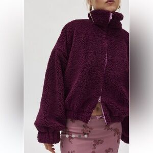 NEW with tags. Bought directly from Urban Outfitters. Incredibly soft and lush. The color is a deep purple heel tone which looks good on almost all skin tones. The pink zipper adds an awesome pop of color! No smoking, no pets home.