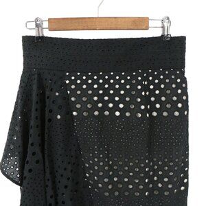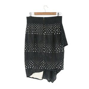NWT Kimora Lee Simmons Eyelet Black White Asymmetrical Ruffle Hem Skirt 10