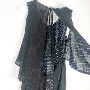 NWT Kinder Aggugini Romper Womens 8 Black Blue White Polka Dot Sheer Open-Back