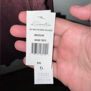 NWT Kinetix Casual Luxury men's long-sleeve tee hoodie Maroon Size Medium