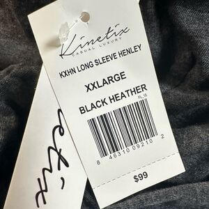 NWT Kinetix Casual Luxury Men’s Black Heather Long Sleeve Henley - Size XXL