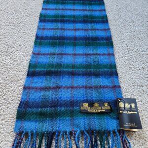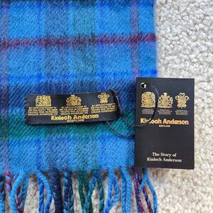 NWT Kinloch Anderson Blue Plaid Wool Fringe Scarf
