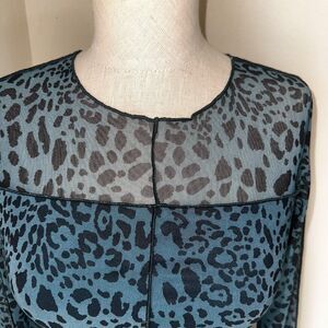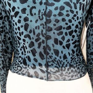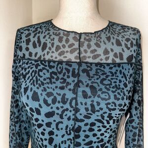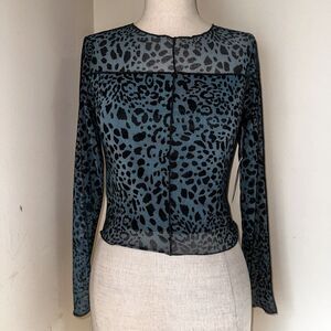 NWT Kirious Teal Black Cropped Lace Mesh Long Sleeves Large Lined Top Size XS
