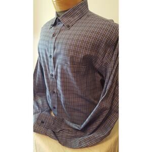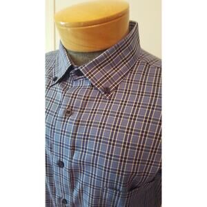 NWT Kirkland Mens Blue Black Plaid Button Collar Dress Shirt Tailored Large L