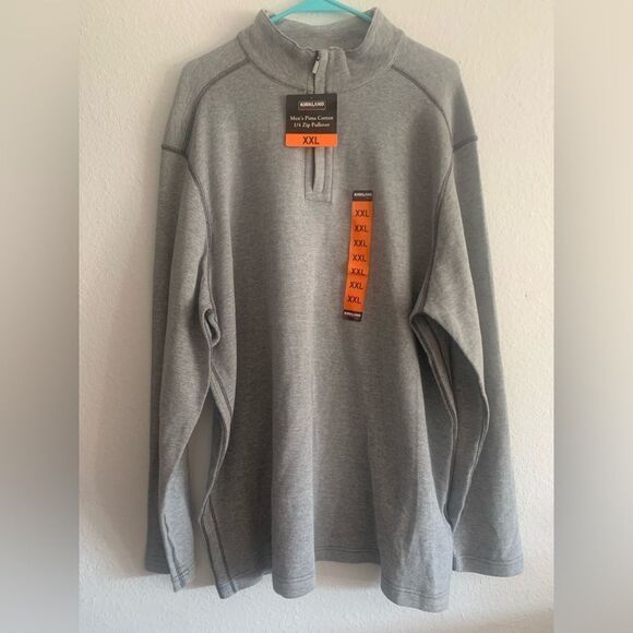 NWT Kirkland Gray Pima Cotton 1/4 Zip Pullover