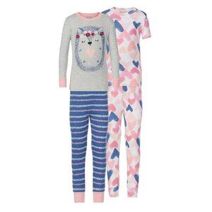 NWT - Kirkland Signature Pink Hearts and Hedgehog 4pc Pajama Set - Size 4T