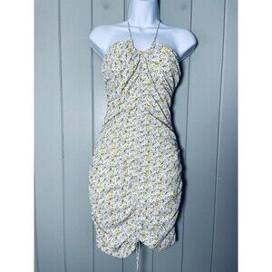 New with tags Kiss the Sky for Urban Outfitters ruched halter mini dress in green, yellow and pink floral print. Size medium.