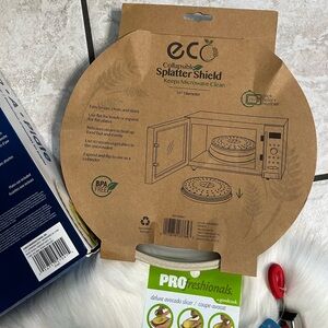 Tongs, avocado slicer, paper plate holder, splash guard or food cover, small strainer and corn holders