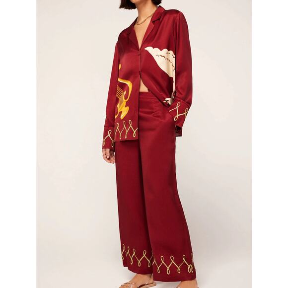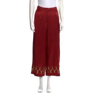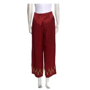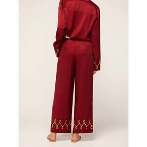 NWT Kitri Maroon Satin Embroidered Pull On Pants M