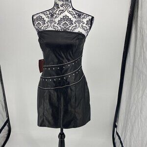 NWT Kitten By AllureBlack Faux Leather Zipper Embellished Mini Dress. Size Large