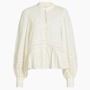 NWT Kivari | "Tana" Cotton Button Front Crochet Detail Blouse in Cream