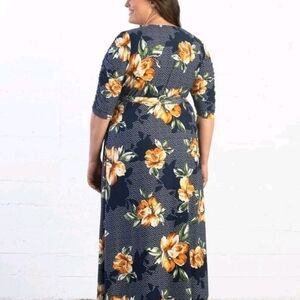 NWT Kiyonna Dress Meadow Dream Style Navy/Orange Floral 4x Maxi Wrap Dress Rare