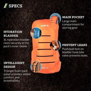 NWT - Klymit Echo 12-Liter Hydration Backpack - orange w/black trim BH