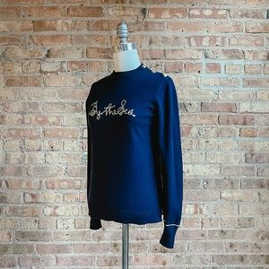 Gold embroidered "By the Sea" at front