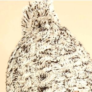 Stay warm and stylish with this cozy knit beanie featuring a playful pom-pom. The cream and brown colors add a touch of elegance to your winter wardrobe.