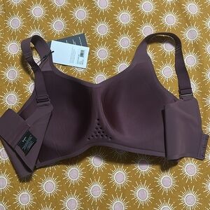 NWT Knix Dahlia catalyst high-impact sports bra. Size 5 (note this brand is snug at first and after a few wears are so comfortable). Cutting edge design and construction. Maximum support and mega comfort. Three prong for easy on and off. Pretty plum color. size 5 is equivalent to DD/E (see photo)