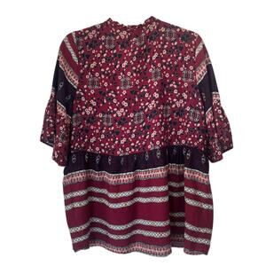 NWT Knox Rose 3/4 Sleeve V-Neck Top Boho Flowy Relaxed Boxy Size Medium