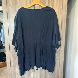 NWT Knox Rose 4X Boho Top Navy Blue White Embroidered V Neck