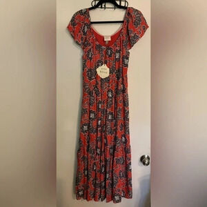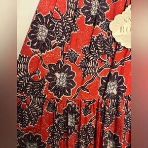 NWT Knox Rose Maxi Dress Red and Blue Floral Flutter Sleeve Lined Rayon Pockets