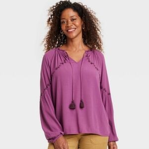 NWT Knox Rose Women's Bohemian Peasant Embroidered Blouse Top M