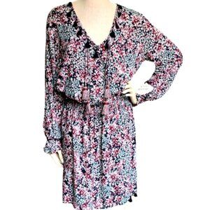 Step out in style with this beautiful Knox Rose tassel trim dress in "Vintage Wine" Color. The dress features a vibrant floral pattern that is perfect for any occasion. The long balloon sleeves and V-neckline add a touch of elegance to the dress, while the lightweight rayon material ensures comfort and breathability. This dress is perfect for any woman who wants to make a statement. It is ideal for travel, parties, or casual wear. The dress is machine washable and easy to care for, making it a practical addition to any wardrobe. With its smocked waist and collarless design, this dress is sure to turn heads. It is available in size 2XL/18 and comes in a beautiful multicolor design.