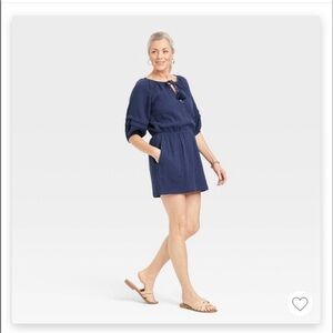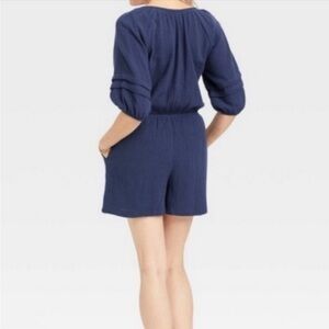 New with tags. There is a liner on the inside of the short part and there are 2 front pockets.