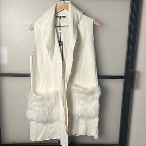 NWT Kobi Halperin Viola Genuine Fox Fur Trim Wool Blend Sweater Vest Size XS
