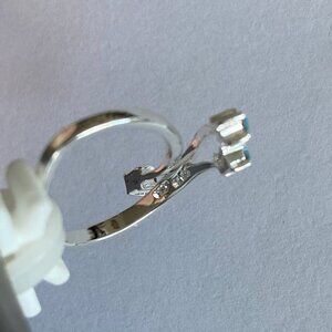 This NWT Kohl's signed fine silver plated ring in size 8 features 3 beautiful blue gemstones in a branching flower shape with a width of 2.5mm and a depth of 3mm per each gem. The ring has a wrap, crisscross, and band style with a prong setting, making it the perfect gift for occasions like engagements, weddings, anniversaries, and birthdays. The ring is new with tags, unused, and never worn. It has the original packaging and tag from Kohl's on the back that says MSRP $25.00. I do not see any flaws but please refer to the photos for the condition. The ring is noted as "SIGNED" because there are two marks engraved/stamped on the ring but I cannot make out what they say (please see photos).