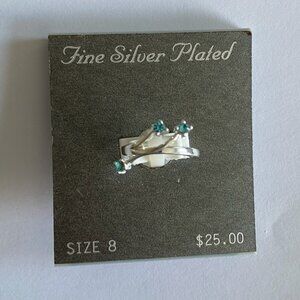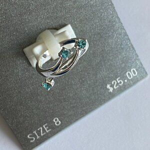 NWT Kohl's Signed Fine Silver Plated Ring Sz 8 Blue Gemstone Rhinestone MSRP $25