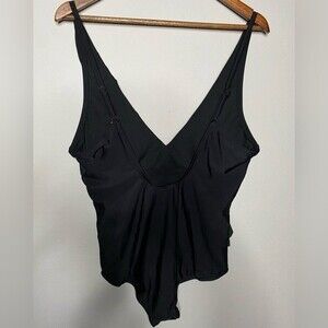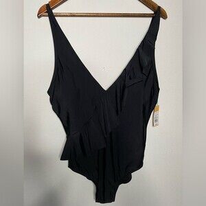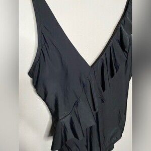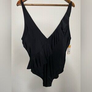 NWT Kona Sol Black Women's Asymmetrical Ruffle One Piece Swimsuit Size L Large