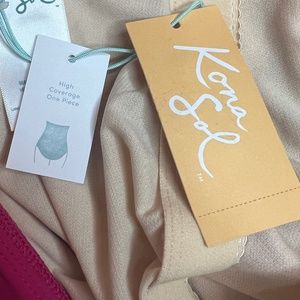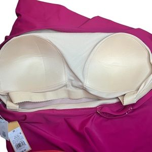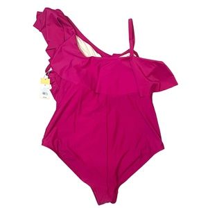 NWT Kona Sol Full Coverage One-Piece Swimsuit One Shoulder Ruffle Pink