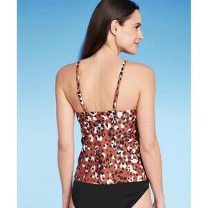 NWT Kona Sol Leopard Print High Neck Keyhole Tankini Top Size Small