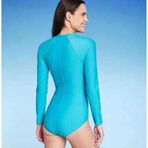 NWT Kona Sol Medium Blue long Sleeve Rash Guard High Coverage One Piece Swimsuit