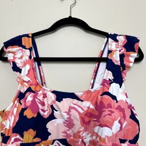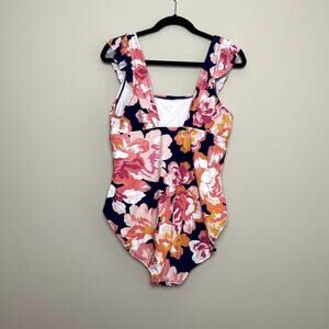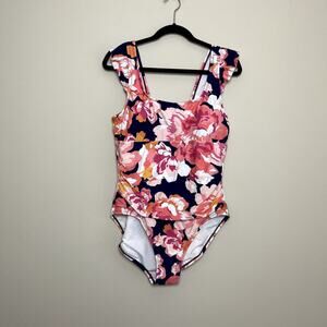NWT Kona Sol Pink Floral Full Coverage Ruffle Sleeve One Piece Swimsuit Sz L