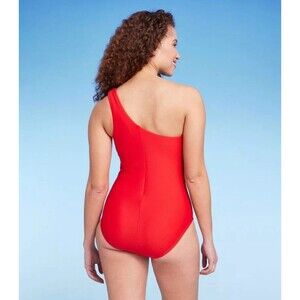 NWT Kona Sol Red Med Coverage One Shoulder One Piece Swimsuit W/ Tummy Control