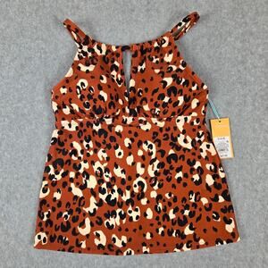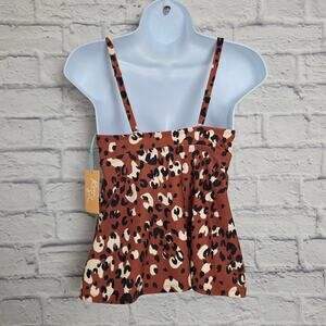 NWT Kona Sol Swim Top Womens Size Small Brown Printed Adjustable Straps