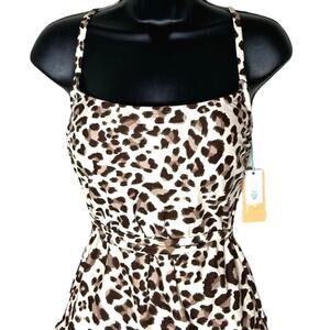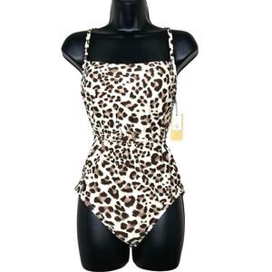 NWT Kona Sol Women’s Leopard Print Wrap Belt One Piece Swimsuit Size Medium