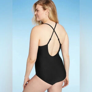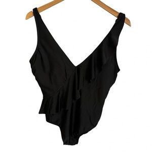 NWT Kona Sol women’s Large Black Ruffle Accent One Piece Swimsuit High Coverage
