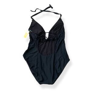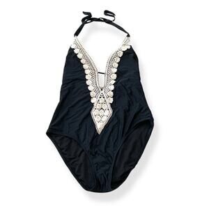 NWT Kona Sol women's black crochet lace deep V one piece swimsuit SZ XL