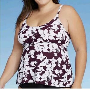 NWT Kona Sol Women's Scoop Neck Adjustable Padded Tankini Top Burgundy Floral