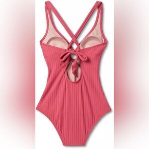 NWT- Kona Sol-Ribbed Ring Medium Coverage One Piece Swimsuit- pink - Size large