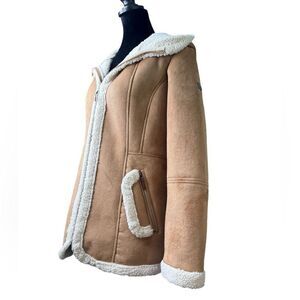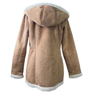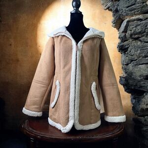 Brand new with tags. 2 zipper pockets. Faux suede exterior with fleece lined hood. Front zipper. Size XXS.
