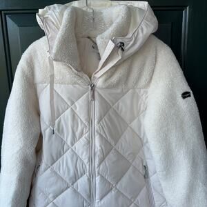 NWT Koolaburra by UGG Mixed Media Sherpa & Quilted Parka XS Cream Oversized Warm