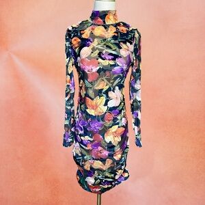 NWT Kourt Mockneck Floral Velvet Burnout Bodycon Dress Size Medium