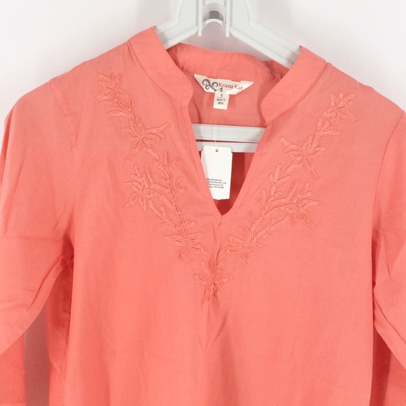 NWT Krazy Kat Coral Embroidered Tunic Top S