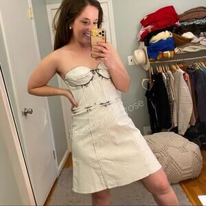 NWT Ksenia Schnaider Corset Mini Dress Paint in Crackled White Bustier M/L
