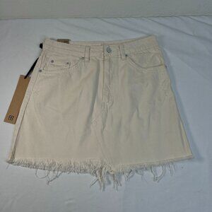 NWT Ksubi Hi Line Mini Skirt Powder White Ivory distressed Designer Size 29