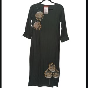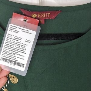NWT Ksut Emerald Green Kurta with Embroidered Floral Accents - Women's Size XL